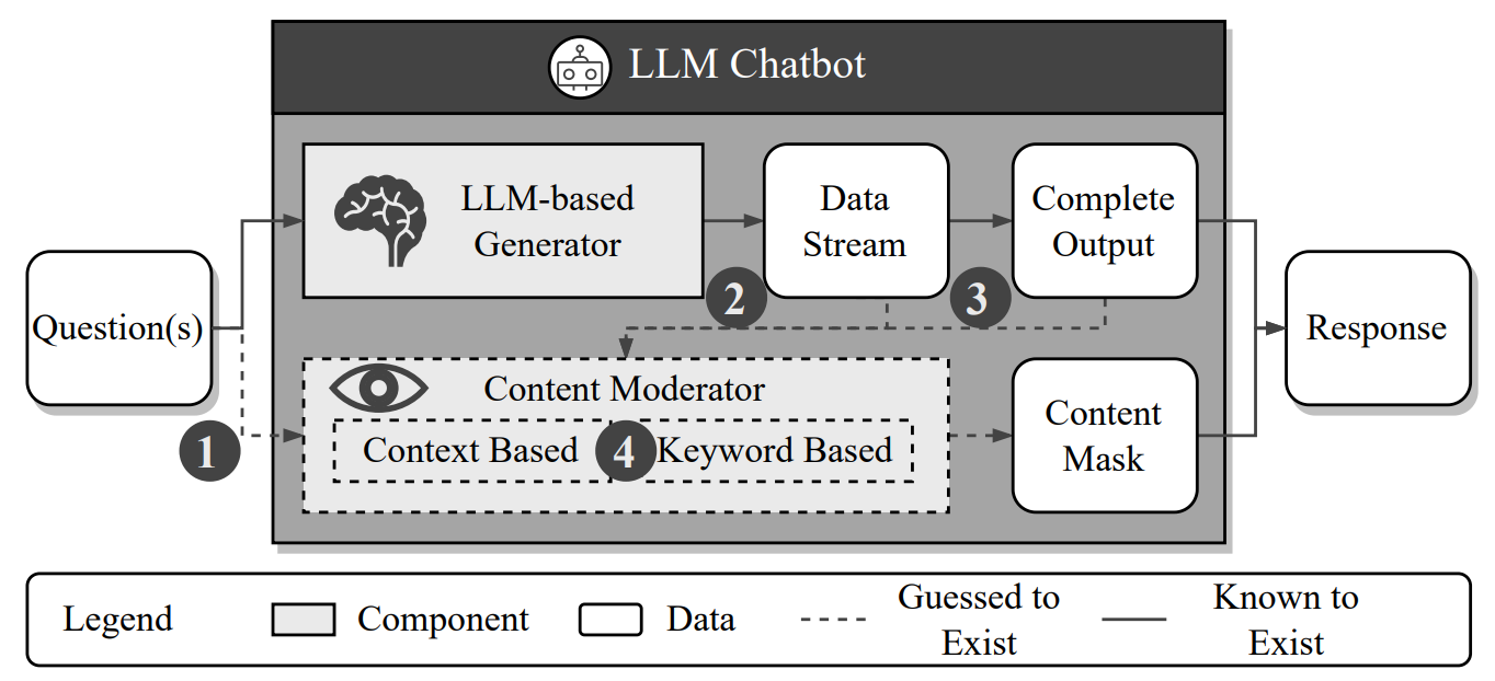 We present a novel method based on time-based characteristics to dissect LLM chatbot defenses. This technique, inspired by time-based SQL injection, uncovers the workings of these defenses and demonstrates a proof-of-concept attack on several LLM chatbots.